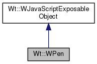 A WPen is JavaScript exposable. If a WPen is JavaScript bound, it can be accessed in your custom JavaScript code through its handle's jsRef(). At the moment, only the color() property is exposed, e.g. a pen with the color WColor(10,20,30,255) will be represented in JavaScript as:
